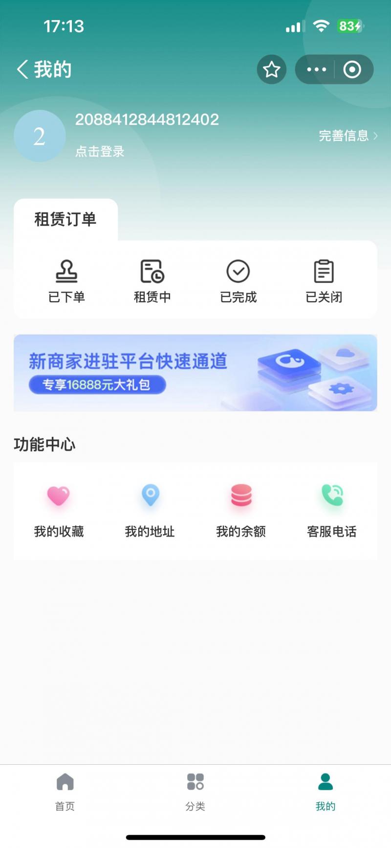 功能清单:实名认证、信用免押、商品分类、优惠券、积分、订单进度查询、在线客服等功能