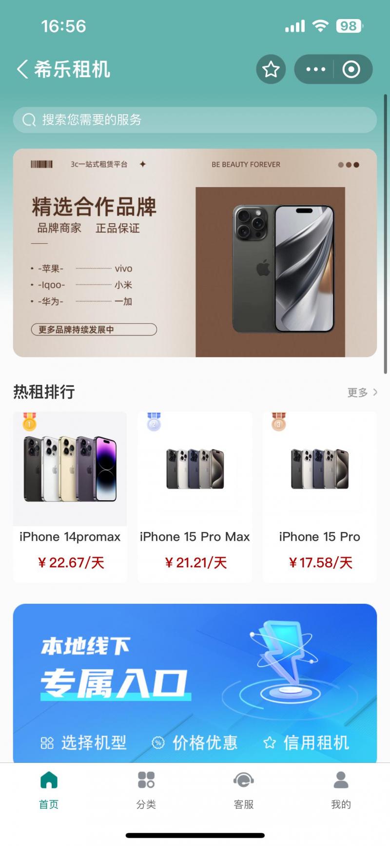 名称:希乐租机小程序