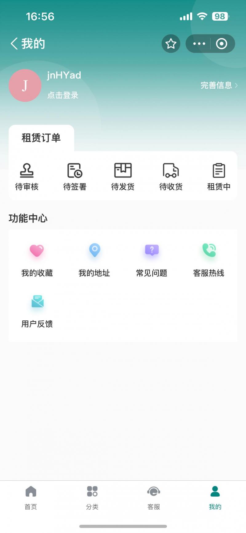 功能清单:实名认证、信用免押、商品分类、优惠券、积分、订单进度查询、在线客服等功能
