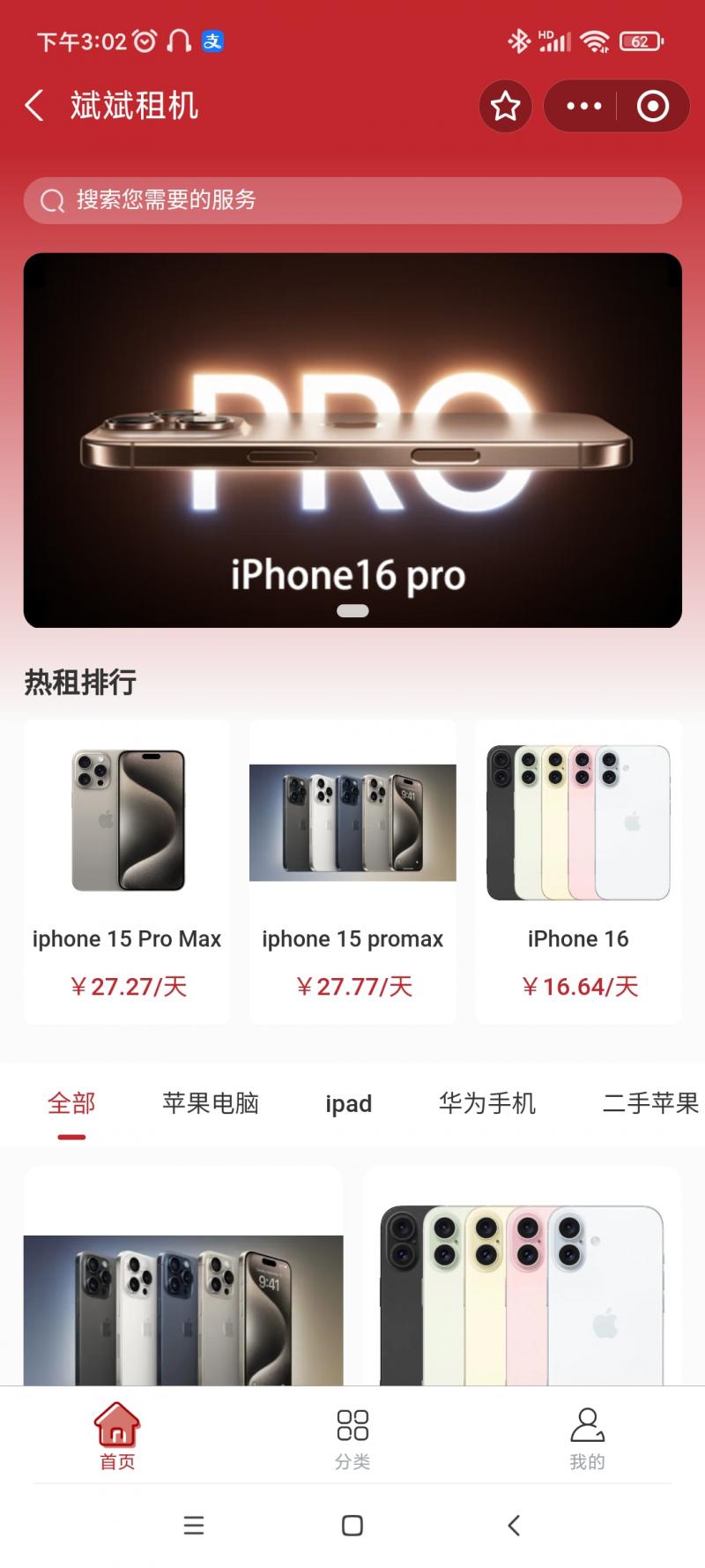 名称:斌斌租机小程序