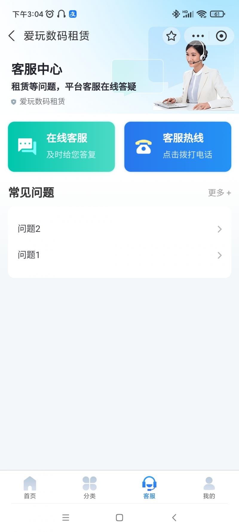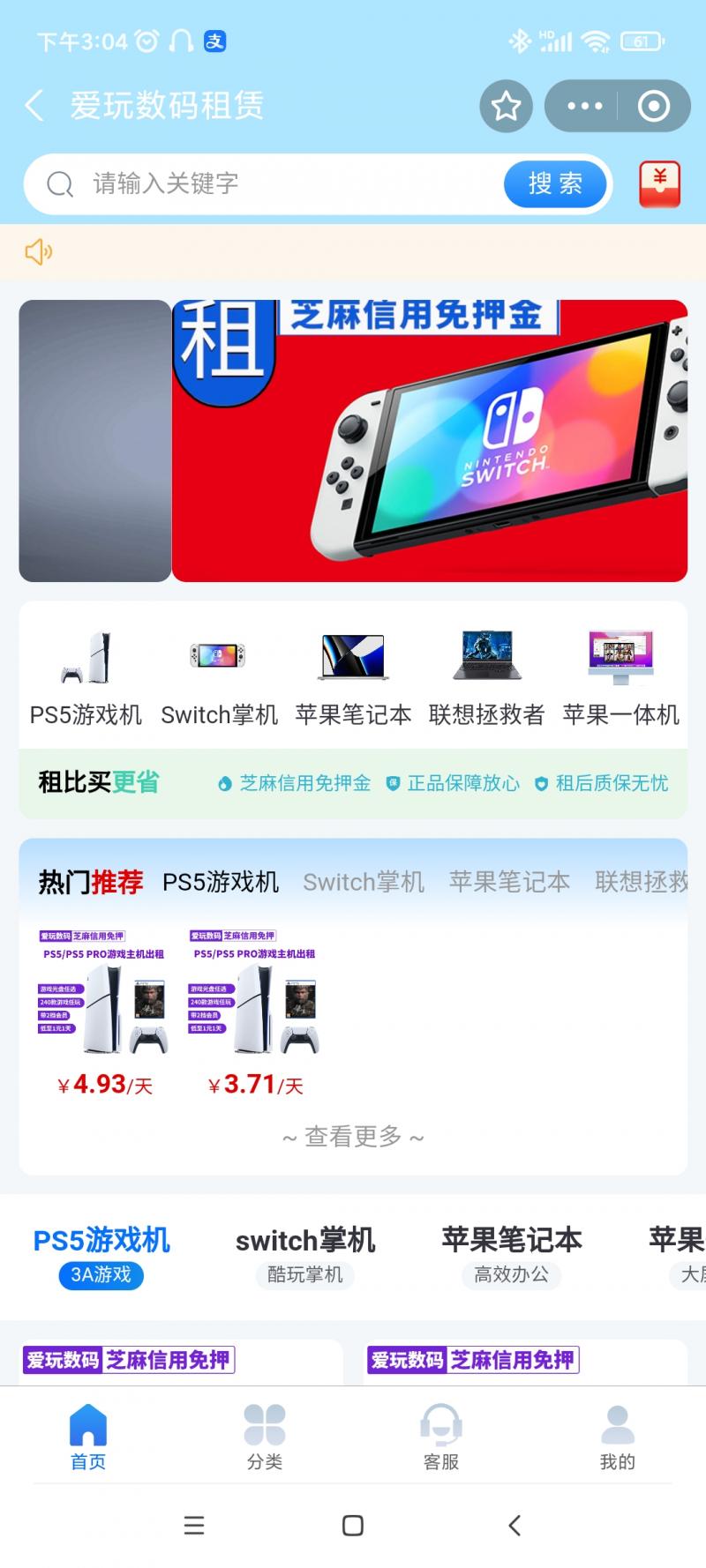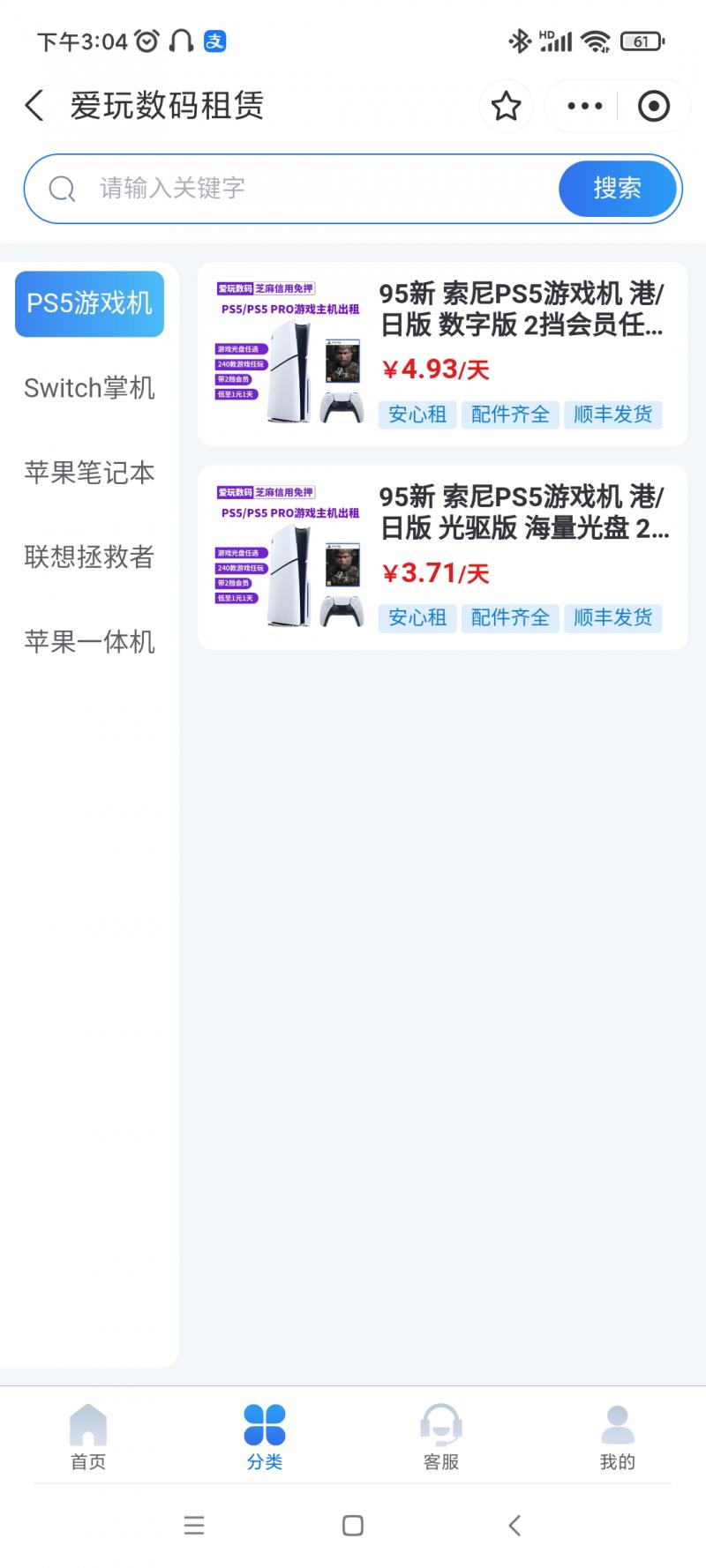 名称:爱玩数码租赁小程序