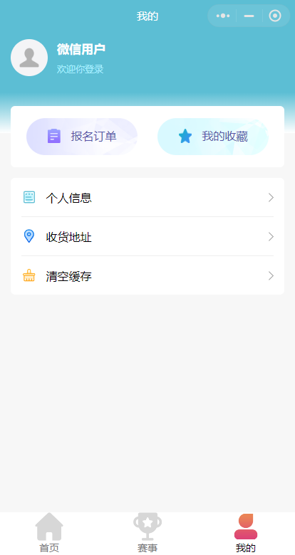 功能清单:新闻资讯,赛事列表,收藏功能,报名管理,订单管理,报名查询功能