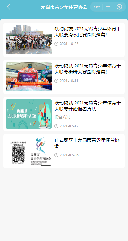 小程序名称:无锡市青少年体育协会小程序