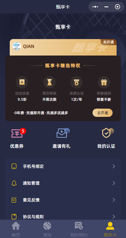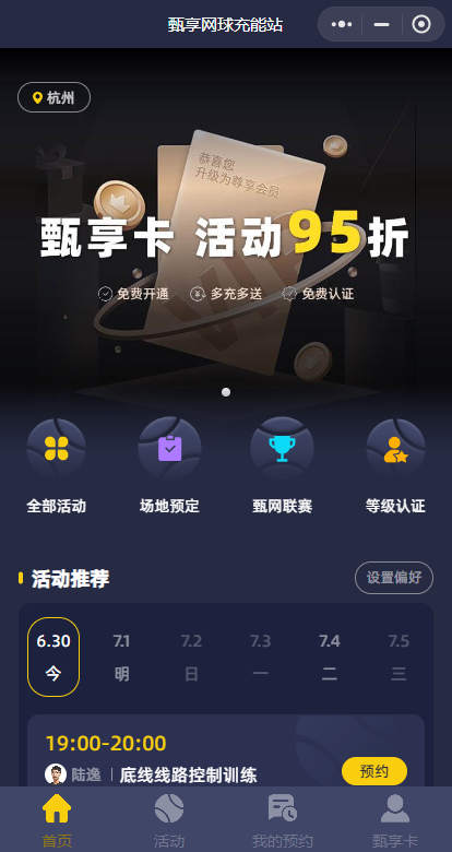 小程序名称:甄享网球小程序