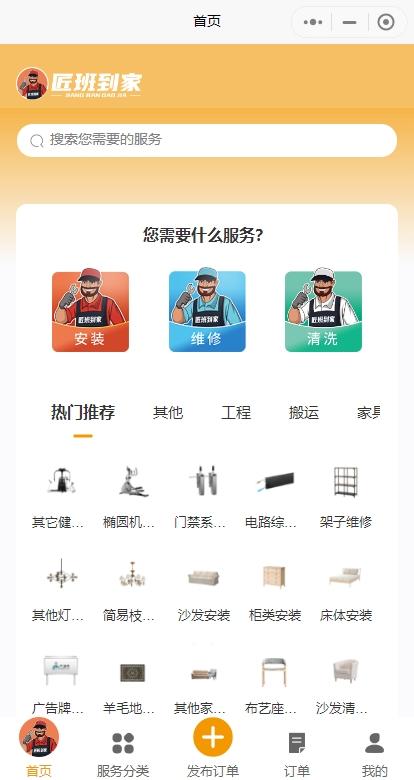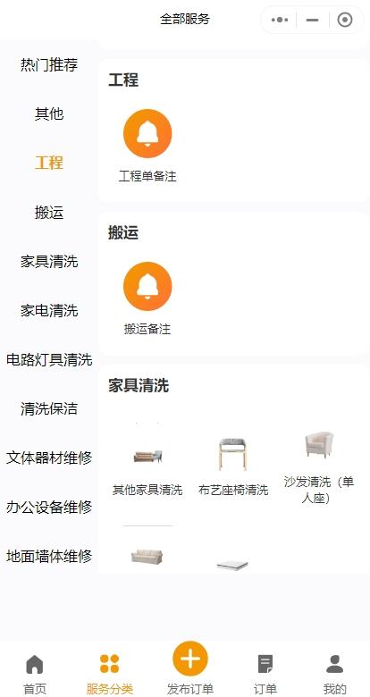 功能清单:服务分类、进度查询、订单发布、申请入驻、定位等多个功能