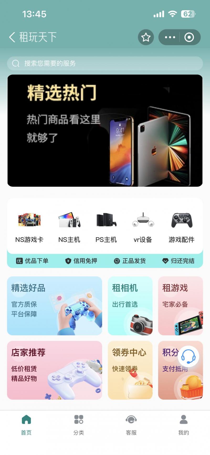 小程序名称:租玩天下小程序