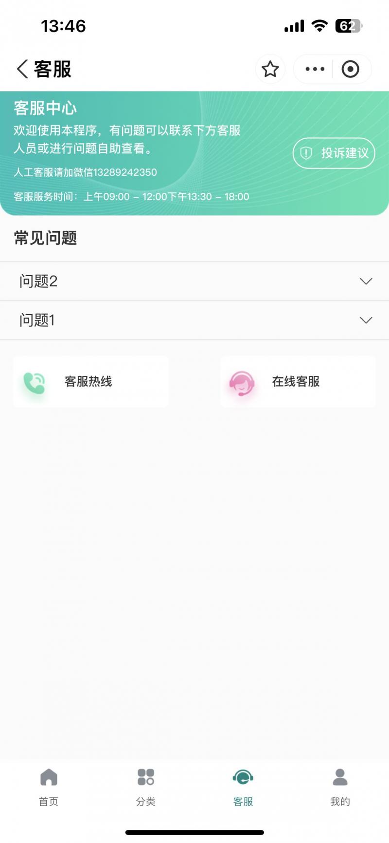 功能清单:信用免押、商品分类、优惠券、积分、订单进度查询、在线客服等多个功能